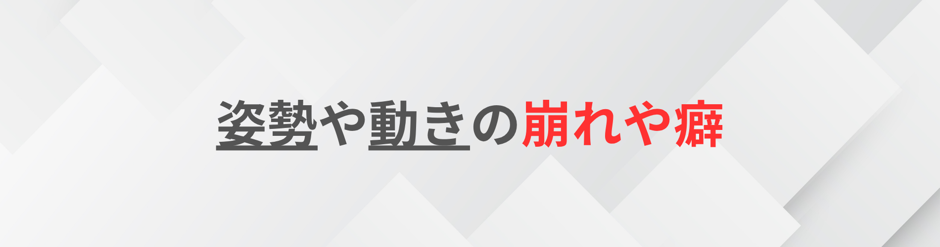 姿勢や動きが崩れていたり、痛みから庇ってしまうケースが 考えられます
