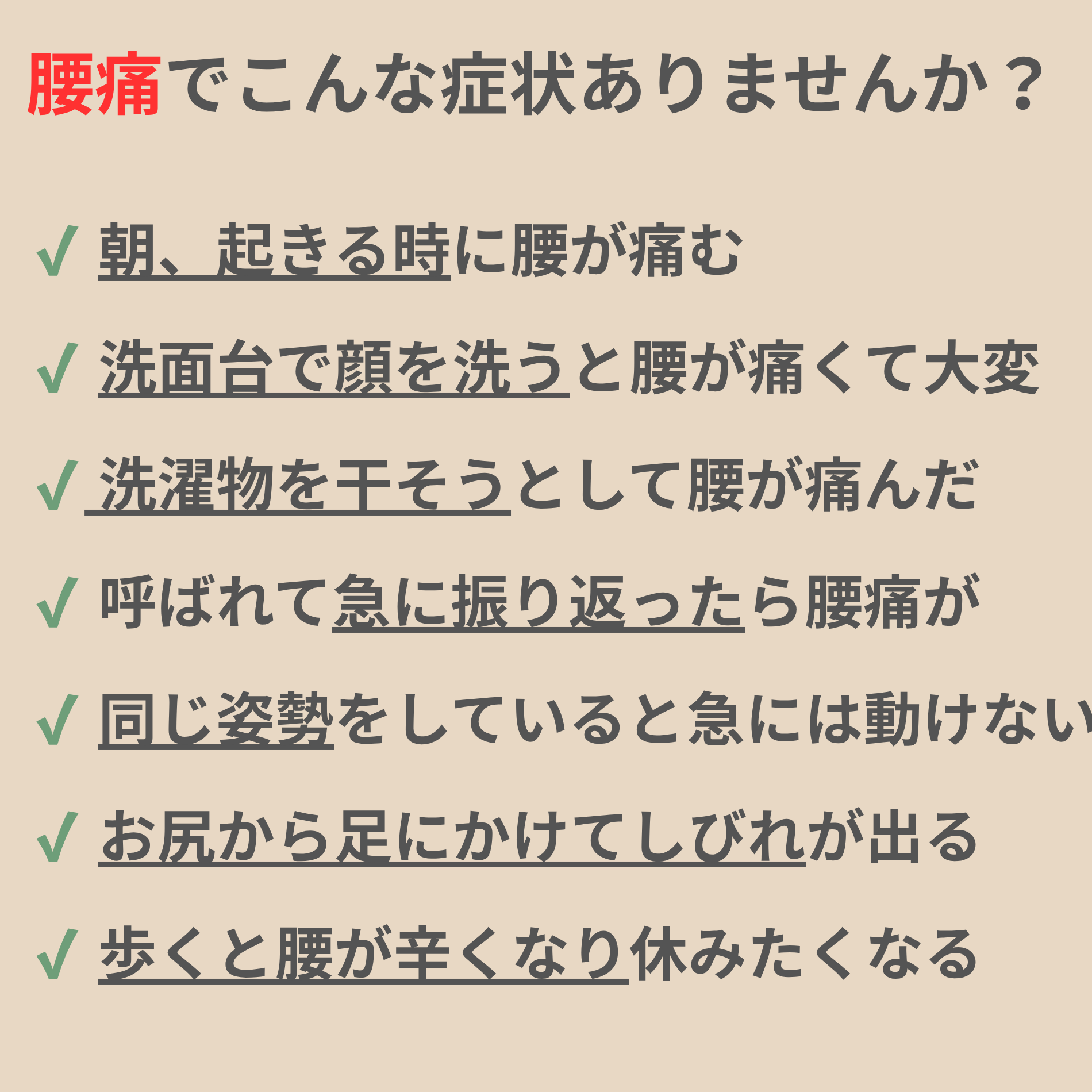 腰痛というので痛みに着目しやすいですが原因は様々で